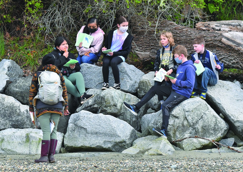 Another Audubon survey, shared with the Vashon Nature Center, monitors Pigeon Guillemots. These birds are the only nesting cliff seabirds on the Island, and the survey provides data about their breeding throughout the Salish Sea. Participants include Brendan McGarry, Hailey Quackenbush, Sherry Lee Bottoms, Max Moore, Quin Williams, Laura Bienen, Yvonne Kuperberg, Elliott James, and Kallis Jarrahy.