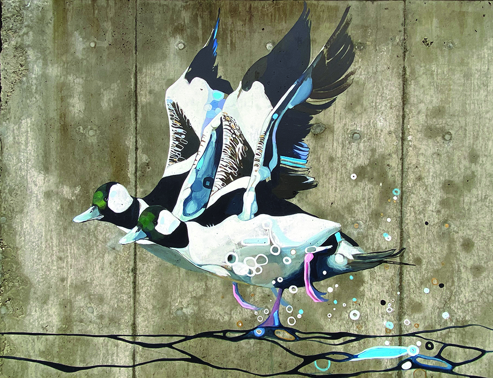 Artist Britt Freda completed the mural in Heron Meadow. It will continue to remind viewers that the eight bird species depicted—and many more—are threatened by climate change.