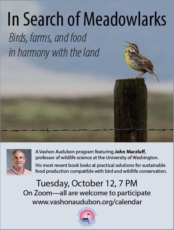 Hunter Davis continued to delight readers of the Vashon Beachcomber with her monthly Bird of the Month feature. We’re grateful to the Beachcomber for publishing other articles related to birds as well.